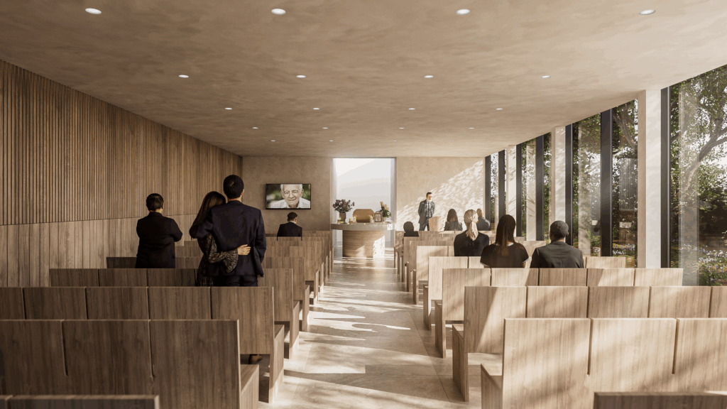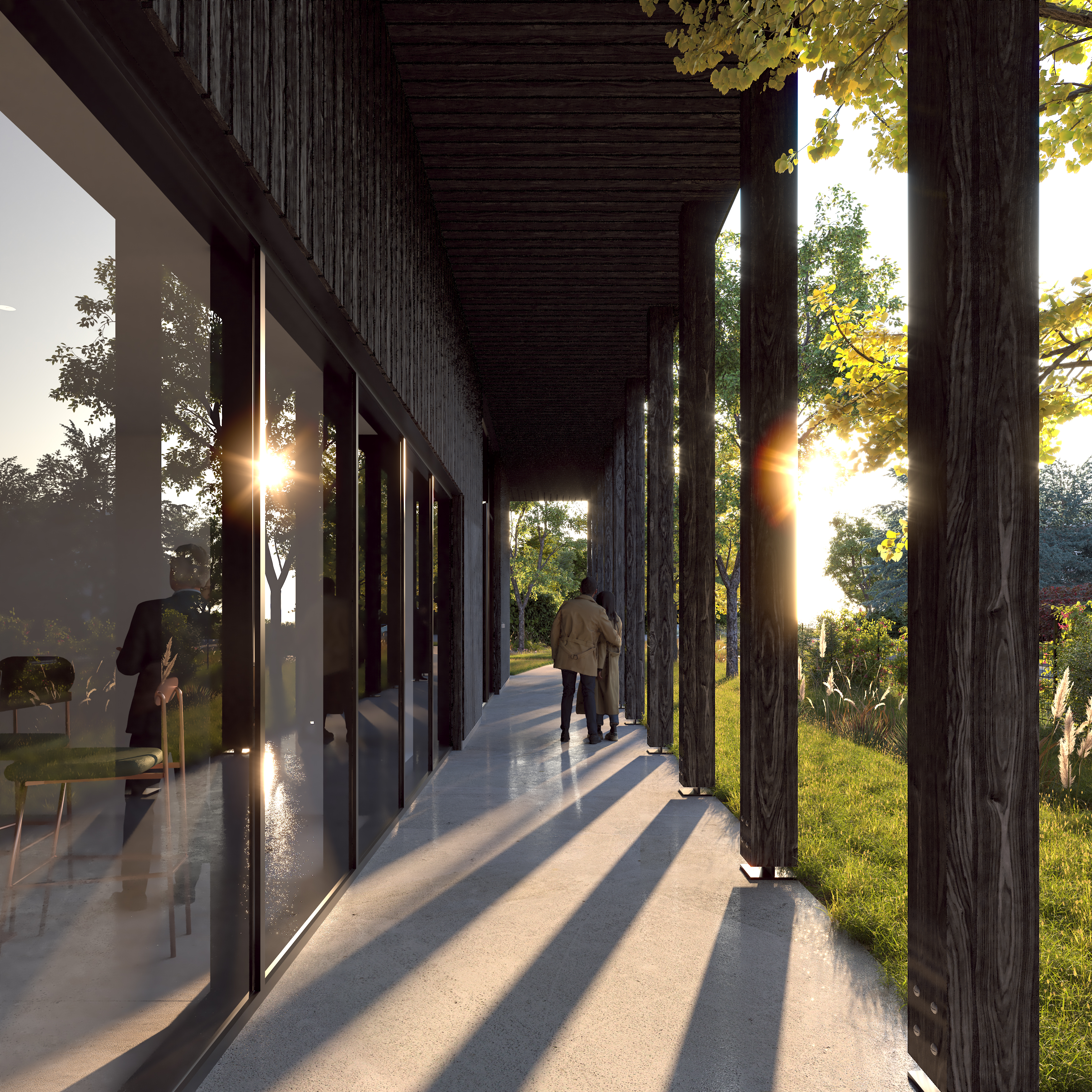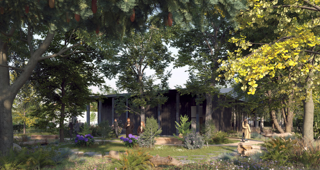 Perspectives et Film (2’30 ») réalisés pour le concours pour la création d’un crématorium en Île-de-France. Raconter une histoire pour mettre en valeur un bâtiment à la symbolique chargée et complexe n’est pas une chose facile. Aussi nous avons choisi de mettre en valeur la dialogue qu’entretient le projet avec son contexte très végétal, en partie forestier, tout en développant un scénario de lumière subtil qui évolue au fur et à mesure qu’avance la visite comme une allégorie du temps qui passe.